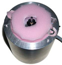 Der Motor wird darin mittels dämpfender Zwischenlagen ohne direkten Kontakt zum Gehäuse fest eingeklemmt.